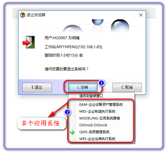 ## 3.1.1 系统登录 **【功能说明】**:介绍系统登录的相关配置信息。 **【操作步骤】**: 1. 双击桌面图标,出现以下登录界面,首次登录需要输入服务器地址,选择语言、应用系统,输入账号、密码点击“登录”登录系统。  2. 输入完以上信息后,点击保存按钮完成操作。 3. 登录后成功界面:  ## 3.1.2 修改密码 **【功能说明】**:系统分配登录账号,登录系统后可修改自己的登录密码。 **【操作步骤】:** 1. 选择标题栏上【文件】->【修改密码】。  2. 点击修改密码后会弹出修改密码登录框,依次输入旧密码、新密码、确认新密码,点击保存完成密码修改操作。  ## 3.1.3 显示/隐藏工具栏 **【功能说明】**:系统支持对工具栏的显示及隐藏操作。 **【操作步骤】:** 1. 选择菜单栏上【查看】->【工具栏】,工具栏前面杆√即可显示出工具栏。  2. 选择菜单栏上【查看】->【工具栏】,工具栏前面杆√去掉,工具栏就被隐藏。  ## 3.1.4 系统注销 **【功能说明】**:用于用户快速切换登录多个不同应用系统。 **【操作步骤】:** 1. 点击右上角的“×”关闭按钮或选择菜单栏【文件】->【退出】按钮退出系统,系统会弹出退货对话框,可看到【注销】,切换想进入应用系统。